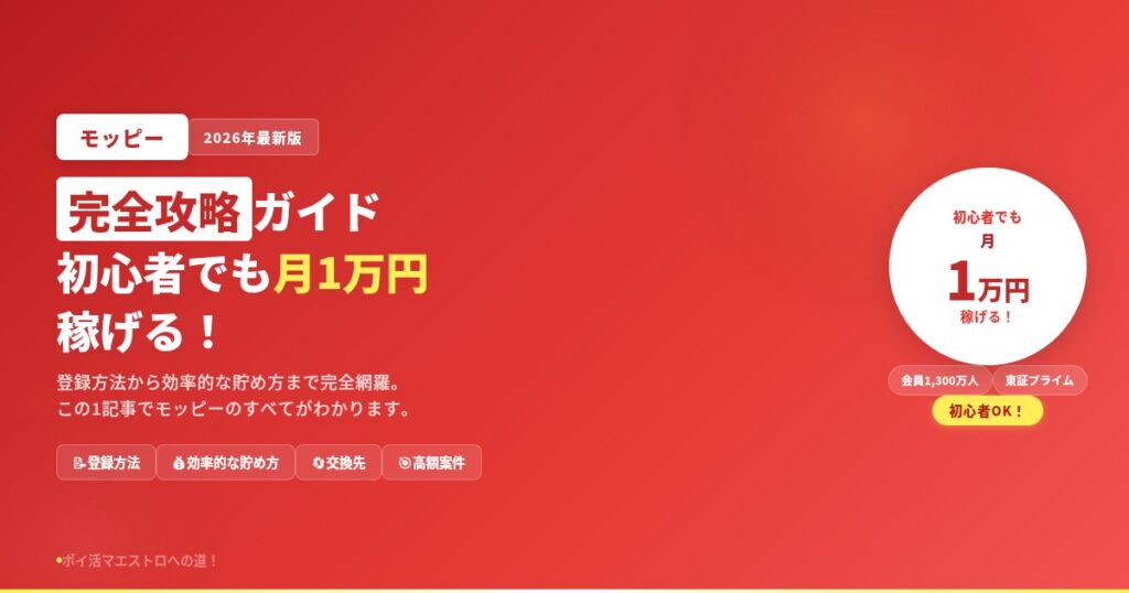 【2026年最新版】モッピー完全攻略ガイド〜初心者でも月1万円稼げる!登録方法から効率的な貯め方まで完全網羅