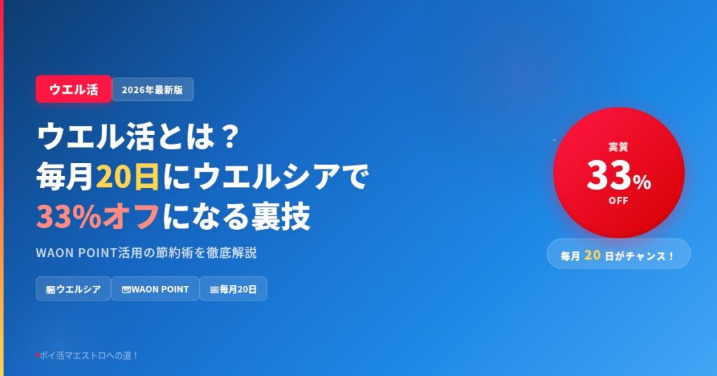 ウエル活とは?毎月20日にウエルシアで33%オフになる裏技を徹底解説【2026年最新版】