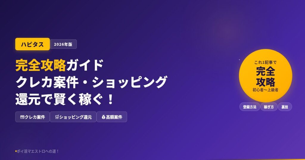 ハピタス完全攻略ガイド【2026年版】クレカ案件・ショッピング還元で賢く稼ぐ!