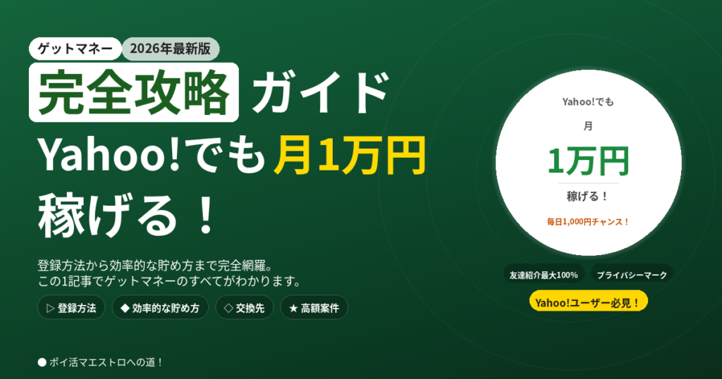 【2026年最新版】ゲットマネー完全攻略ガイド|Yahoo!ショッピング最強・友達紹介最大100%・毎日1,000円チャンス!