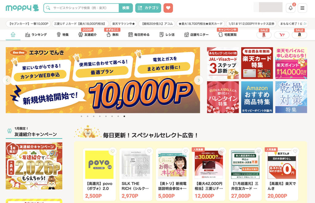 ハピタスもモッピーも、友達紹介制度が充実しています。
