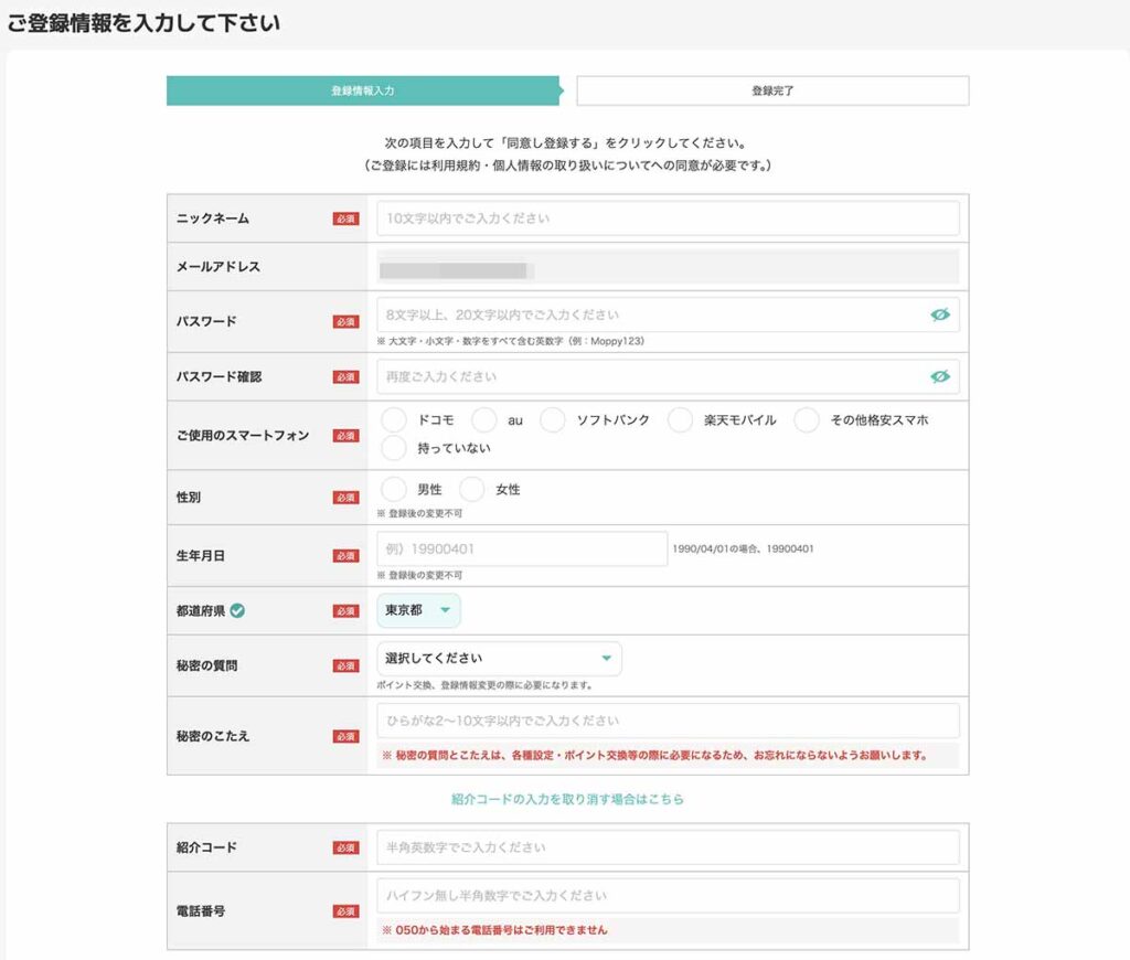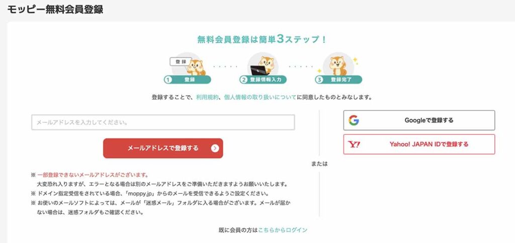 ここでは、モッピーの登録方法を詳しく解説します。