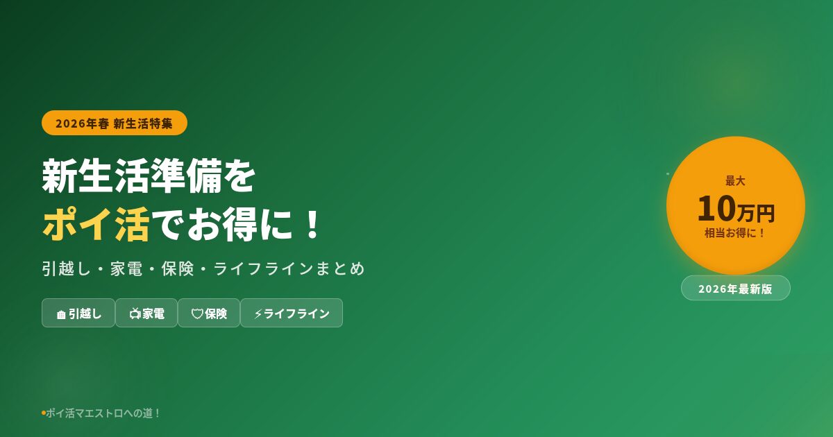 ポイ活歴15年以上の筆者が、新生活の準備で使えるポイ活テクニックをジャンル別に徹底解説します。「知っているか知らないか」だけで数千円〜数万円の差がつくので、ぜひ最後まで読んでみてください。
